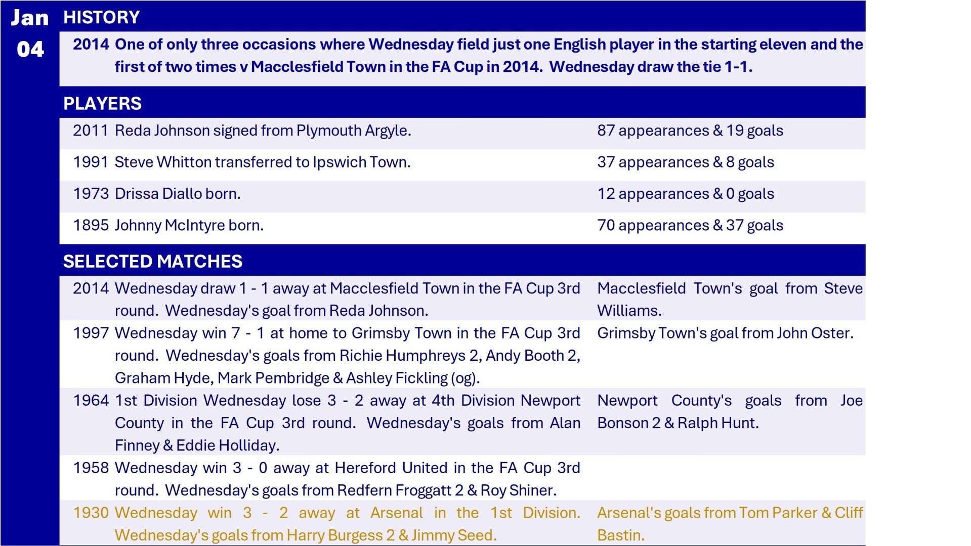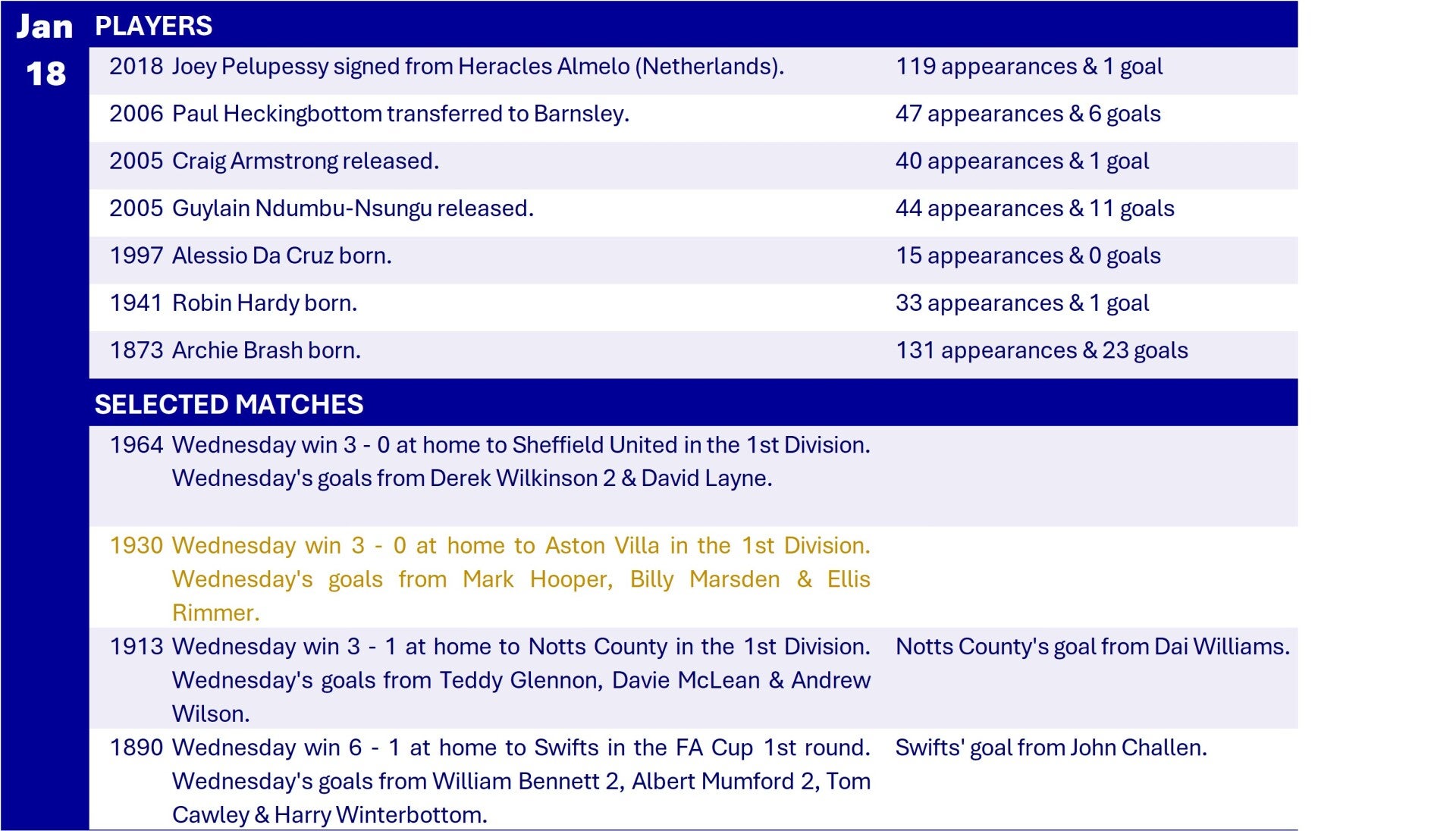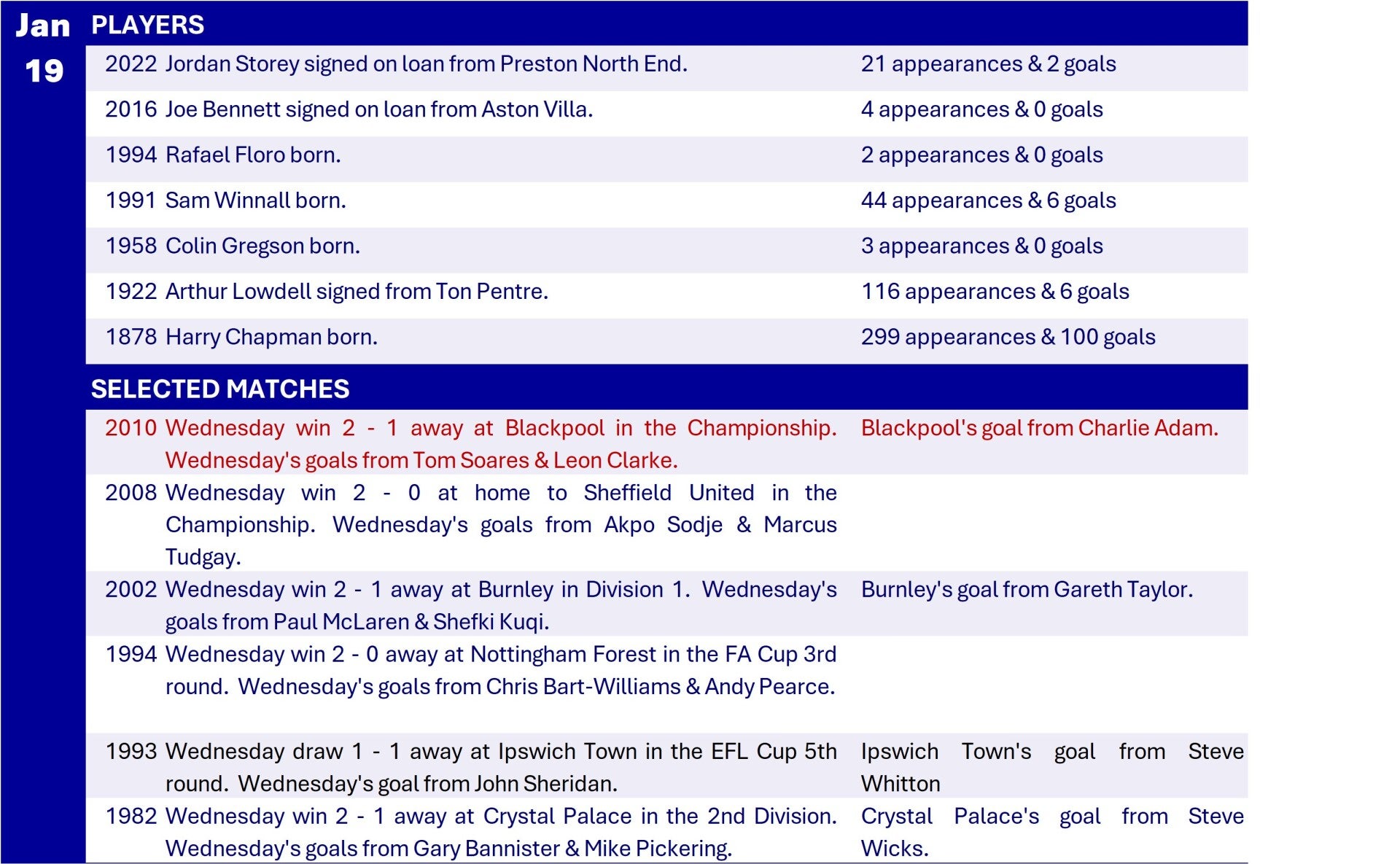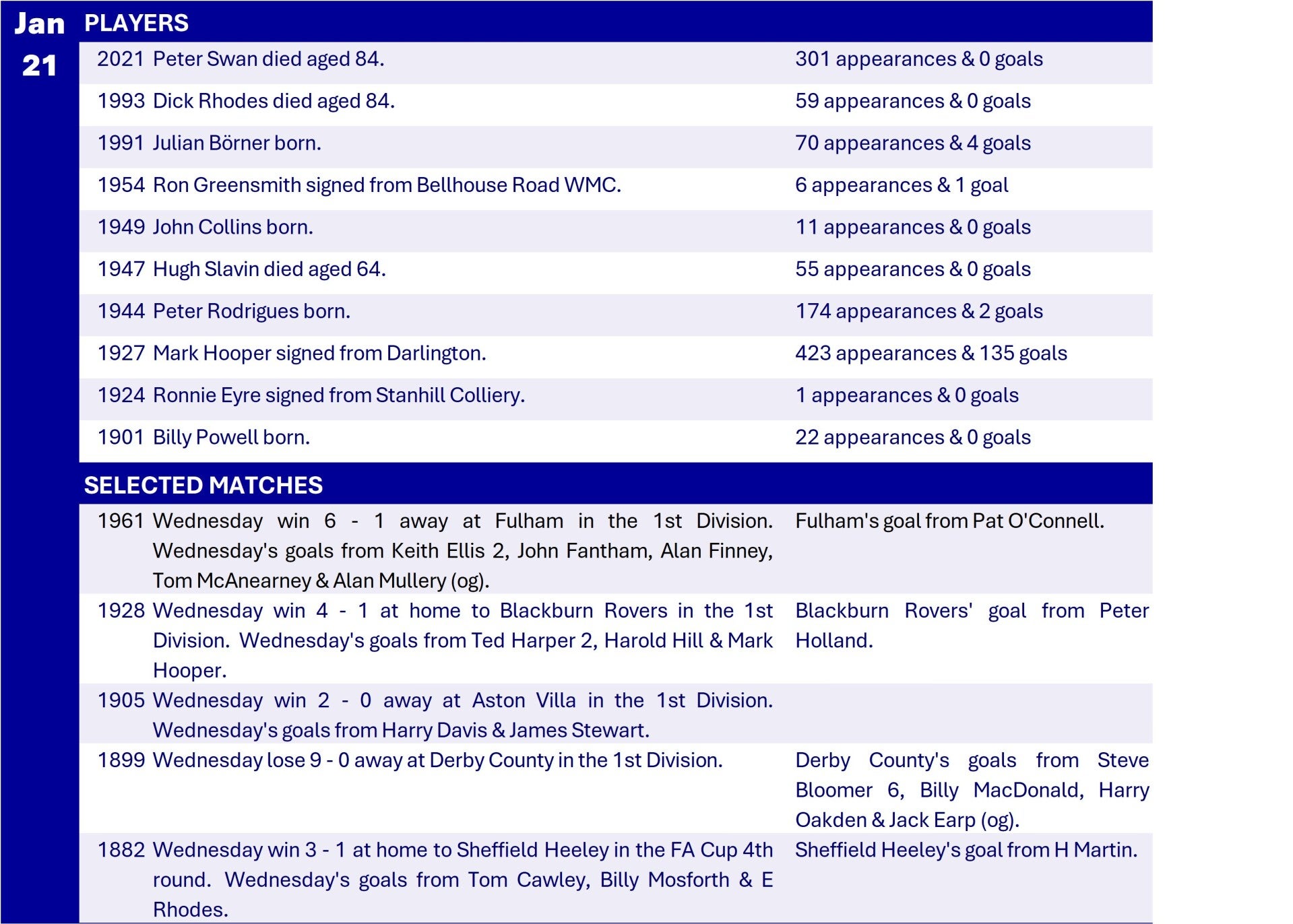 All Wednesday Matches, Players and Managers