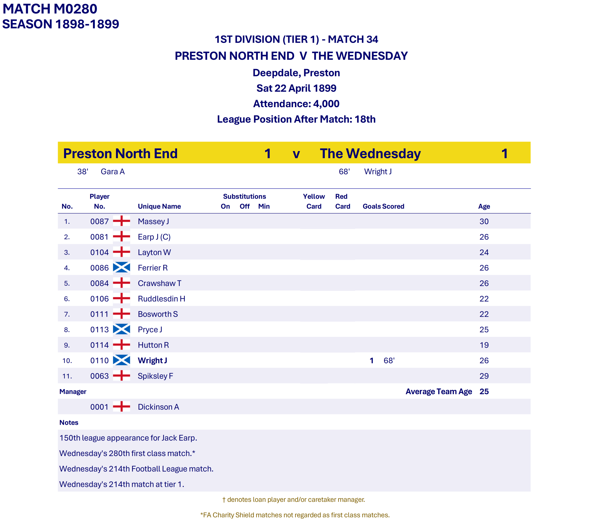 All Wednesday Matches, Players and Managers