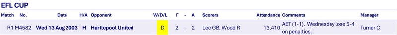 In the EFL Cup Wednesday lose on penalties to Hartlepool United after a draw and extra time at Hillsborough.