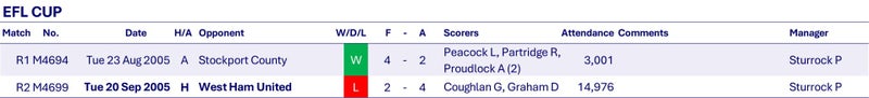 In the EFL Cup Wednesday beat League Two (tier 4) Stockport County at Edgeley Park before being beaten by Premier League West Ham United at Hillsborough in the 2nd round.