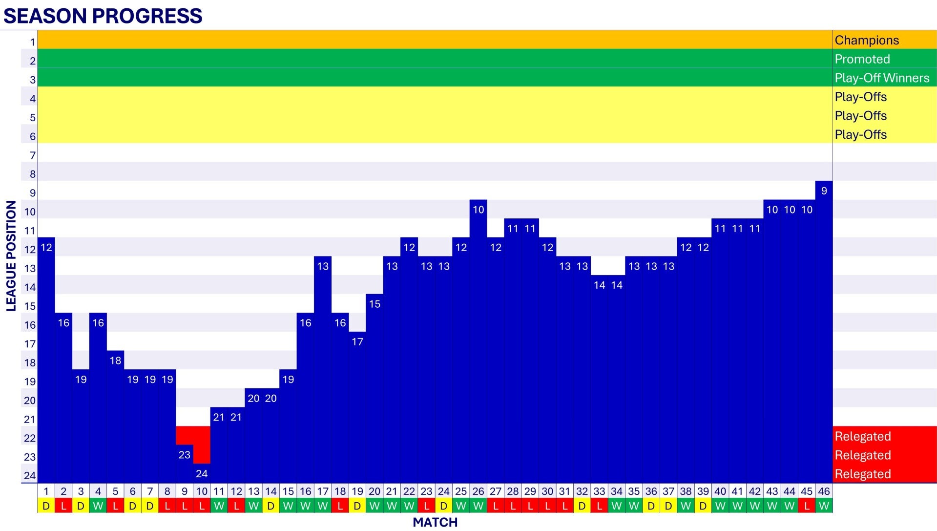 After flirting with relegation the previous season, Wednesday struggle once again and after a run of one win in eight matches, Paul Sturrock is sacked after twelve matches with the team 21st in the league. Caretaker Sean McAuley steadies the ship with three wins and a draw before Brian Laws takes over. Wednesday lose only one of the final thirteen matches and finish in a very respectable 9th place.