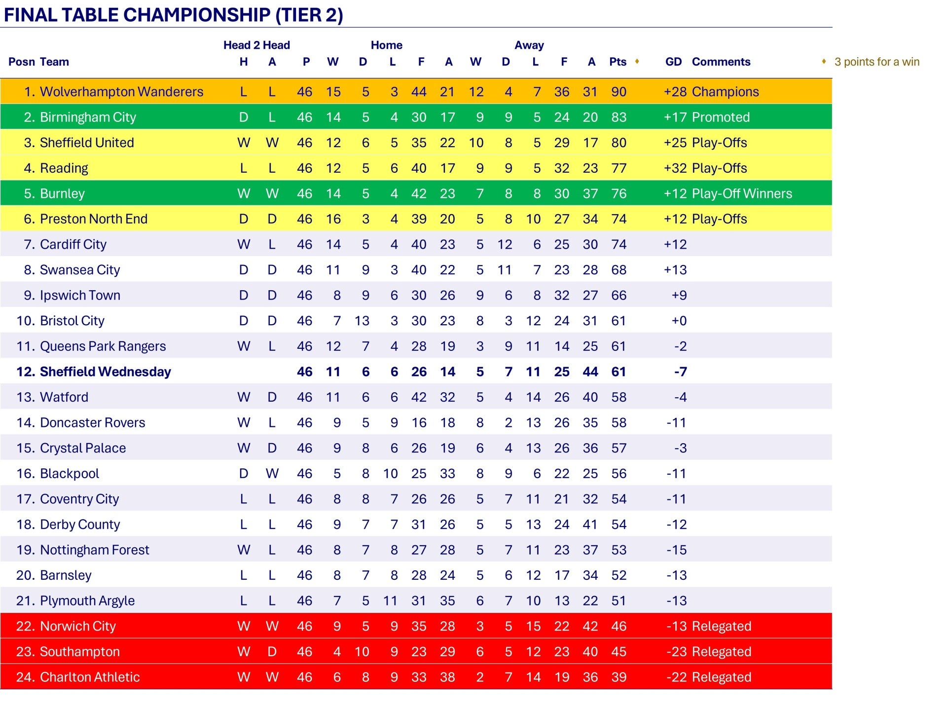 An inconsistent season sees Wednesday finish in mid-table but Brian Laws writes his name in Wednesday history by becoming the first manager to do the League double over bitter rivals Sheffield United for 95 years!