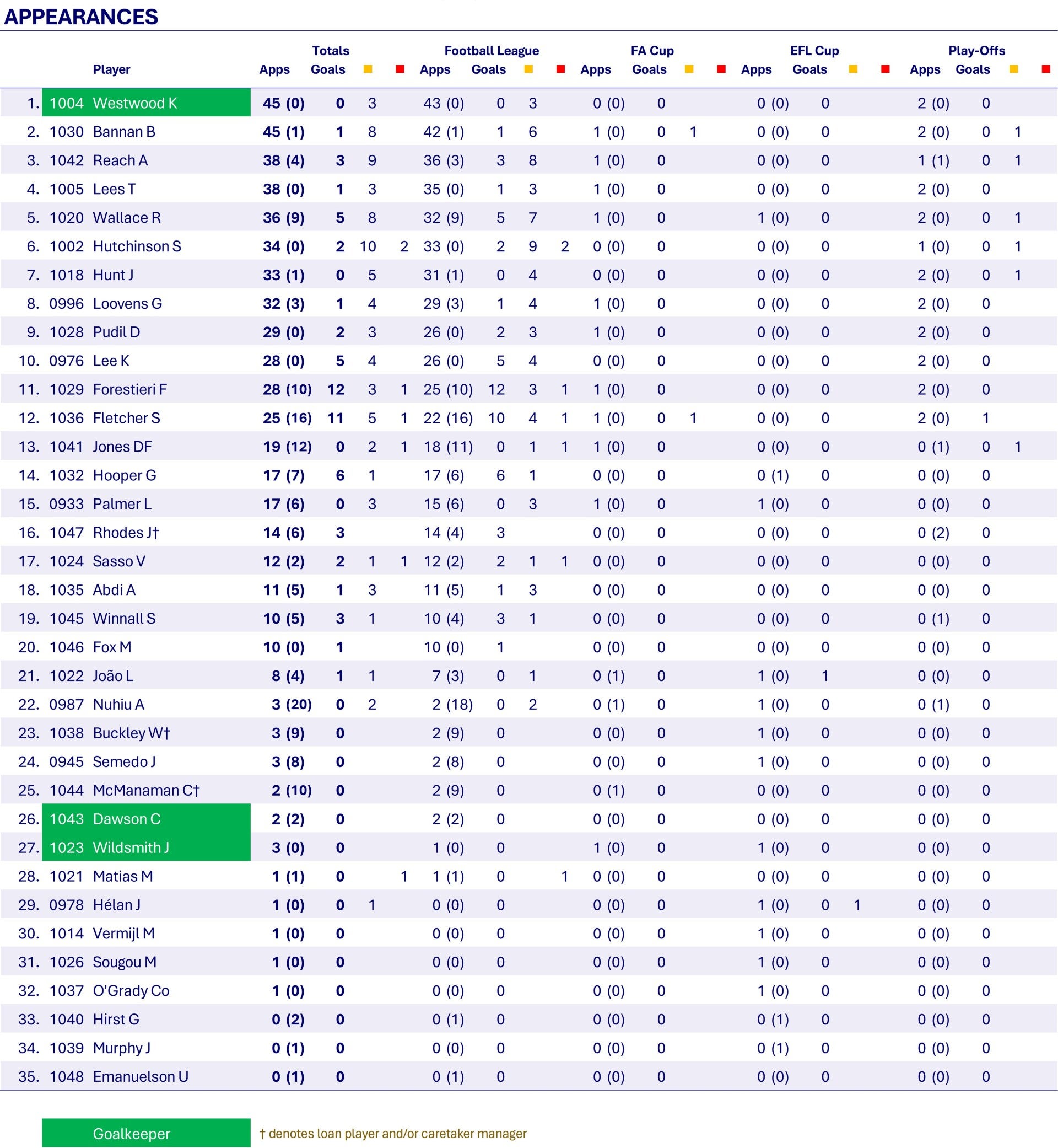 Sheffield Wednesday SWFC The Owls The Wednesday Hillsborough 2016-2017 CHAMPIONSHIP (TIER 2) FOOTBALL LEAGUE Football League FA Cup EFL Cup Westwood K Bannan B Reach A Lees T Wallace R Hutchinson S Hunt J Loovens G Pudil D Lee K Forestieri F Fletcher S Jones DF Hooper G Palmer L Rhodes J† Sasso V Abdi A Winnall S Fox M João L Nuhiu A Buckley W† McManaman C† Semedo J Dawson C Wildsmith J Matias M Hirst G O'Grady Co Newcastle United Brighton & Hove Albion Reading Sheffield Wednesday Huddersfield Town Fulham Leeds United Norwich City Derby County Brentford Preston North End Cardiff City Aston Villa Barnsley Wolverhampton Wanderers Ipswich Town Bristol City Queens Park Rangers Birmingham City Burton Albion Nottingham Forest Blackburn Rovers Wigan Athletic Rotherham United Carvalhal C