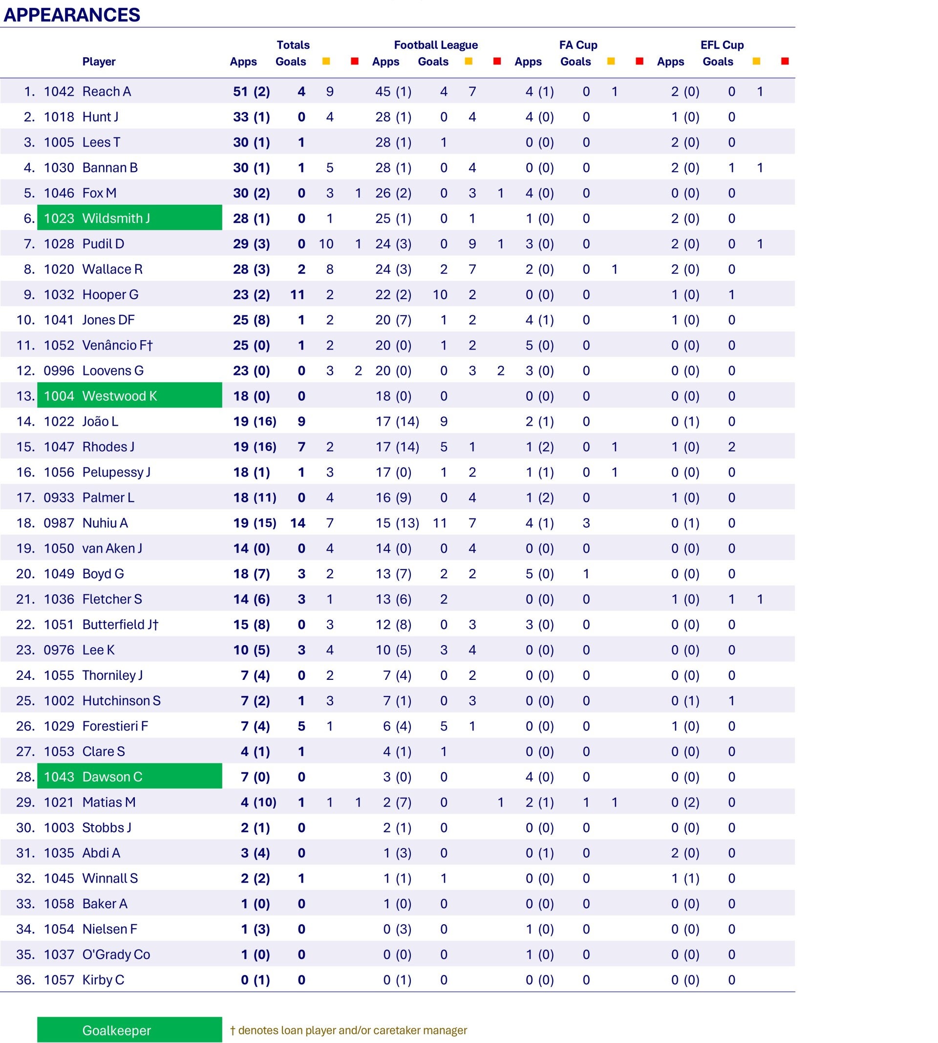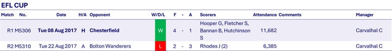Sheffield Wednesday SWFC The Owls The Wednesday Hillsborough 2017-2018 CHAMPIONSHIP (TIER 2) FOOTBALL LEAGUE Football League FA Cup EFL Cup Reach A Hunt J Bannan B Lees T Fox M Wildsmith J Pudil D Wallace R Hooper G Jones DF Venâncio F† Loovens G Rhodes J João L Westwood K Pelupessy J Palmer L Nuhiu A van Aken J Boyd G Fletcher S Butterfield J† Lee K Thorniley J Hutchinson S Forestieri F Clare S Dawson C Matias M Stobbs J Wolverhampton Wanderers Cardiff City Fulham Aston Villa Middlesbrough Derby County Preston North End Millwall Brentford Sheffield United Bristol City Ipswich Town Leeds United Norwich City Sheffield Wednesday Queens Park Rangers Nottingham Forest Hull City Birmingham City Reading Bolton Wanderers Barnsley Burton Albion Sunderland Carvalhal C