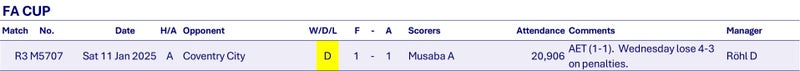 In the FA Cup, Wednesday lose to Coventry City on penalties in the 3rd round.