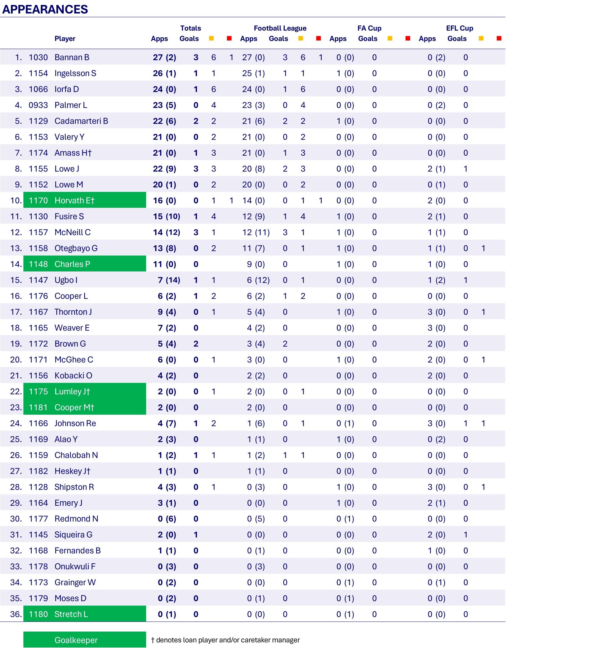 Harry Amass and Sean Fusire's stats include yellow card awarded in abandoned match v Blackburn Rovers on 06.12.2925. The cards still stand despite the match being abandoned.
