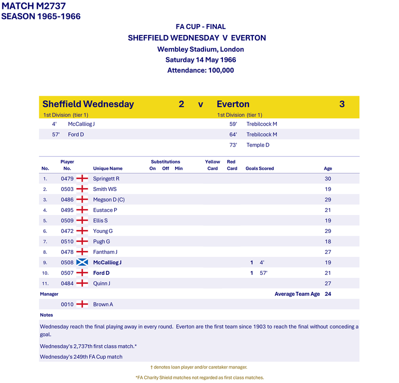 SHEFFIELD WEDNESDAY 1966 FA CUP FINAL TEAM
