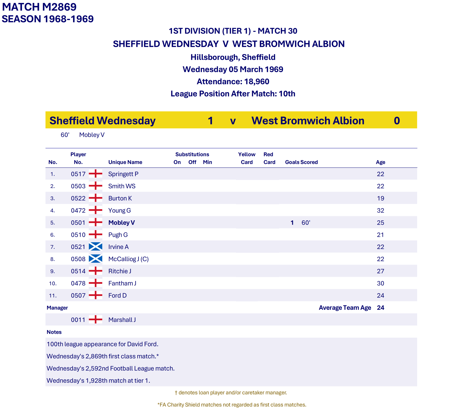 © 2022 - 2025 Sheffield Wednesday Statistical Archive