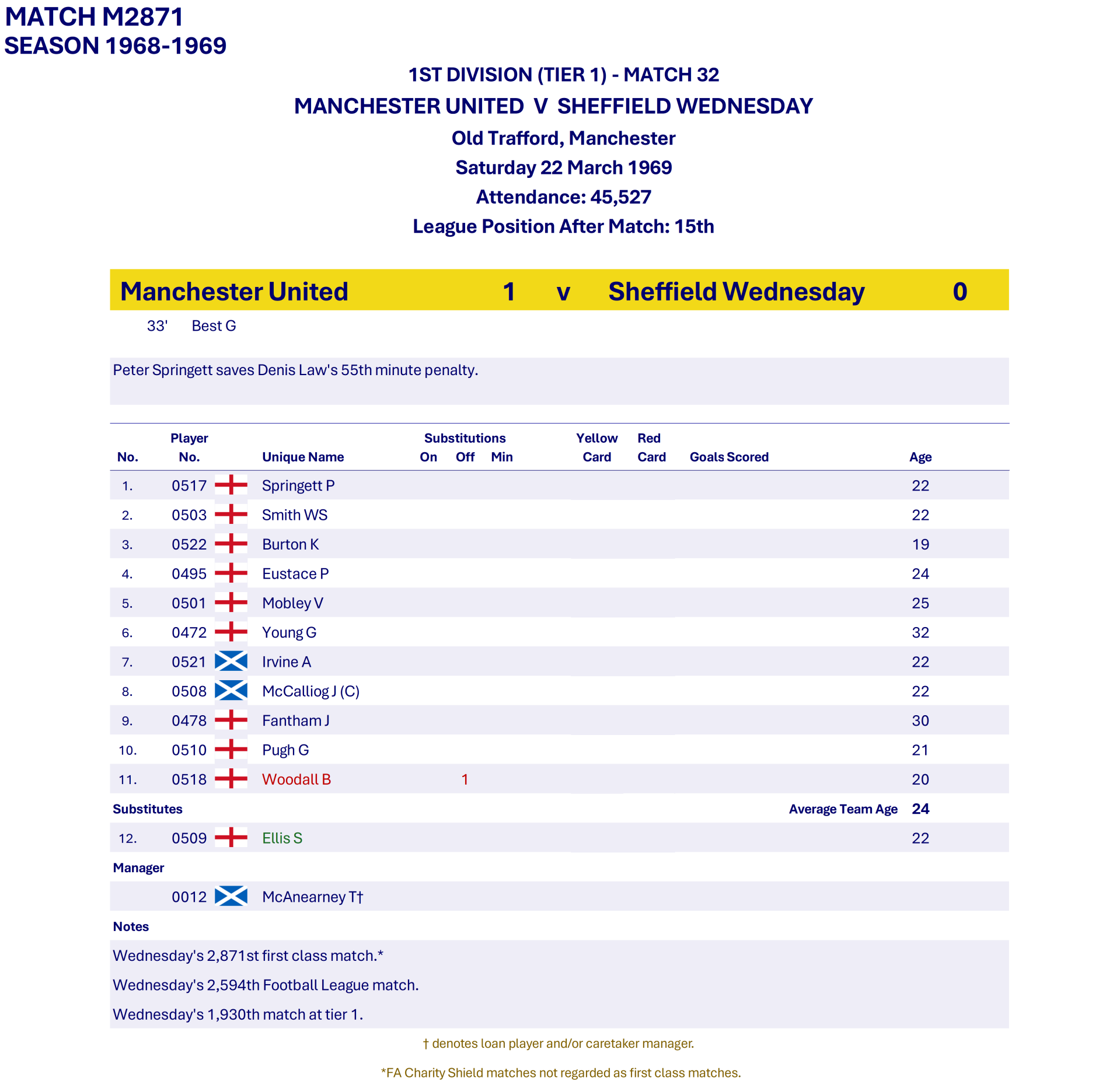 © 2022 - 2025 Sheffield Wednesday Statistical Archive