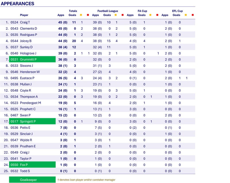In a decent season, Wednesday look like promotion contenders for much of the season, but they only win three away matches all season and ultimately this costs them any chance of promotion. A good start to the season sees them top of the League in September but a run of one win in eleven matches sees them slip to 9th. Five wins in six matches sees them climb to 3rd in mid March but just two wins in the last eight matches results in a disappointing 10th place finish.
