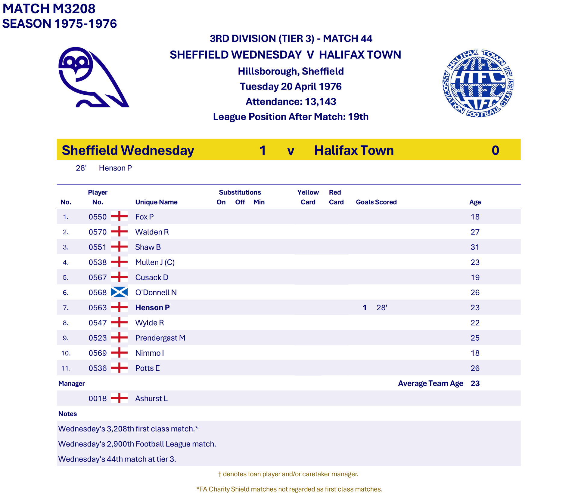 © 2022 - 2025 Sheffield Wednesday Statistical Archive