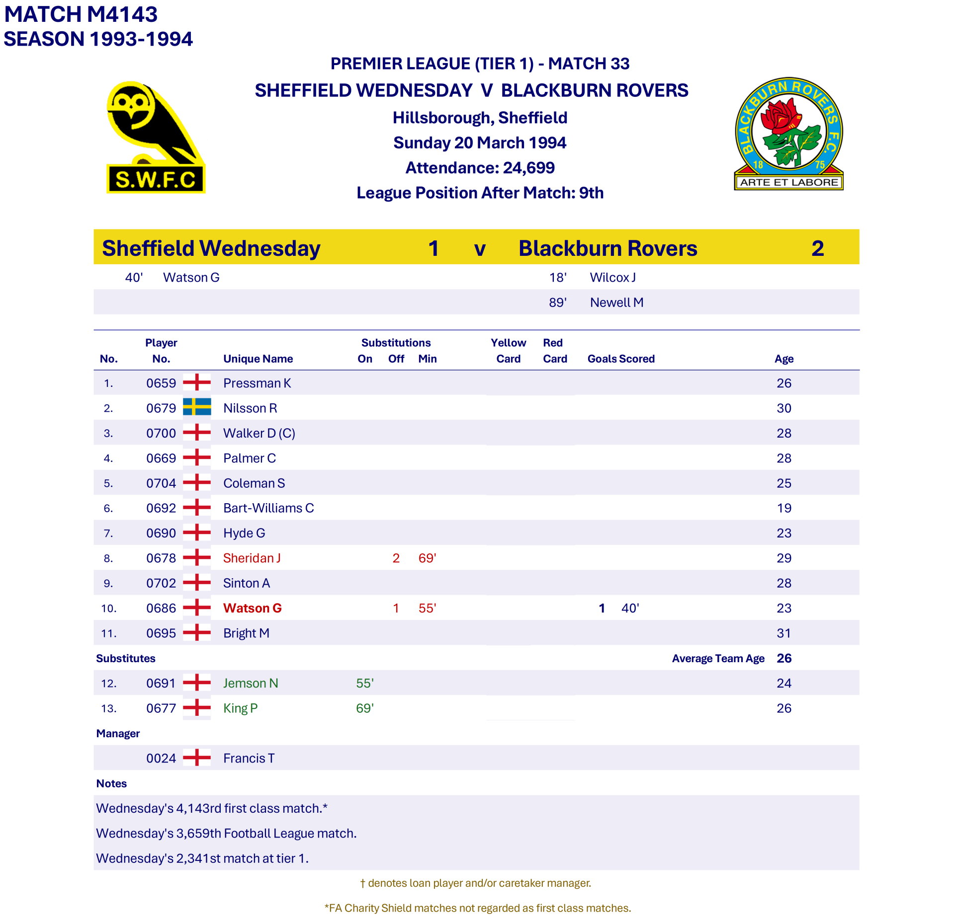 © 2022 - 2026 Sheffield Wednesday Statistical Archive