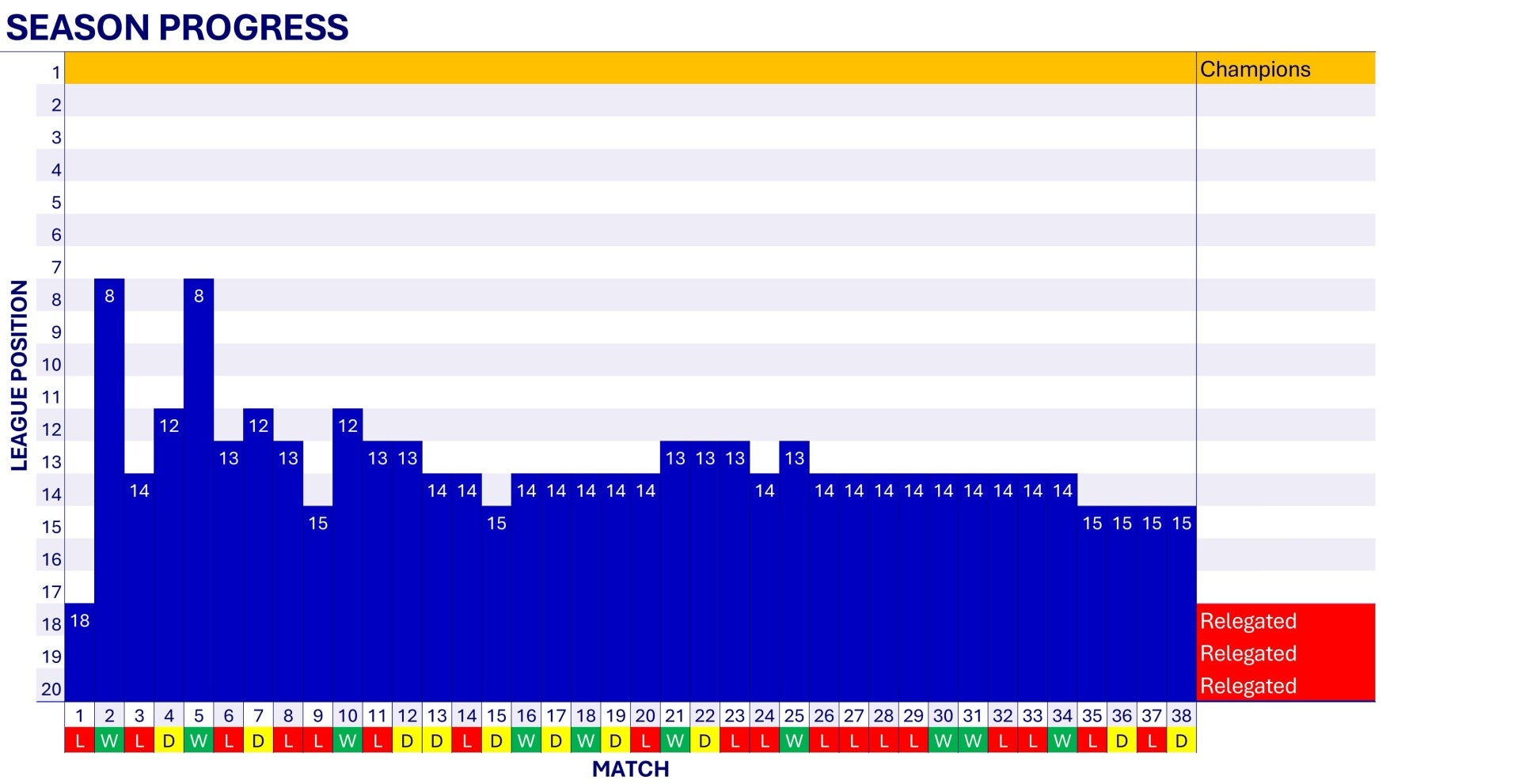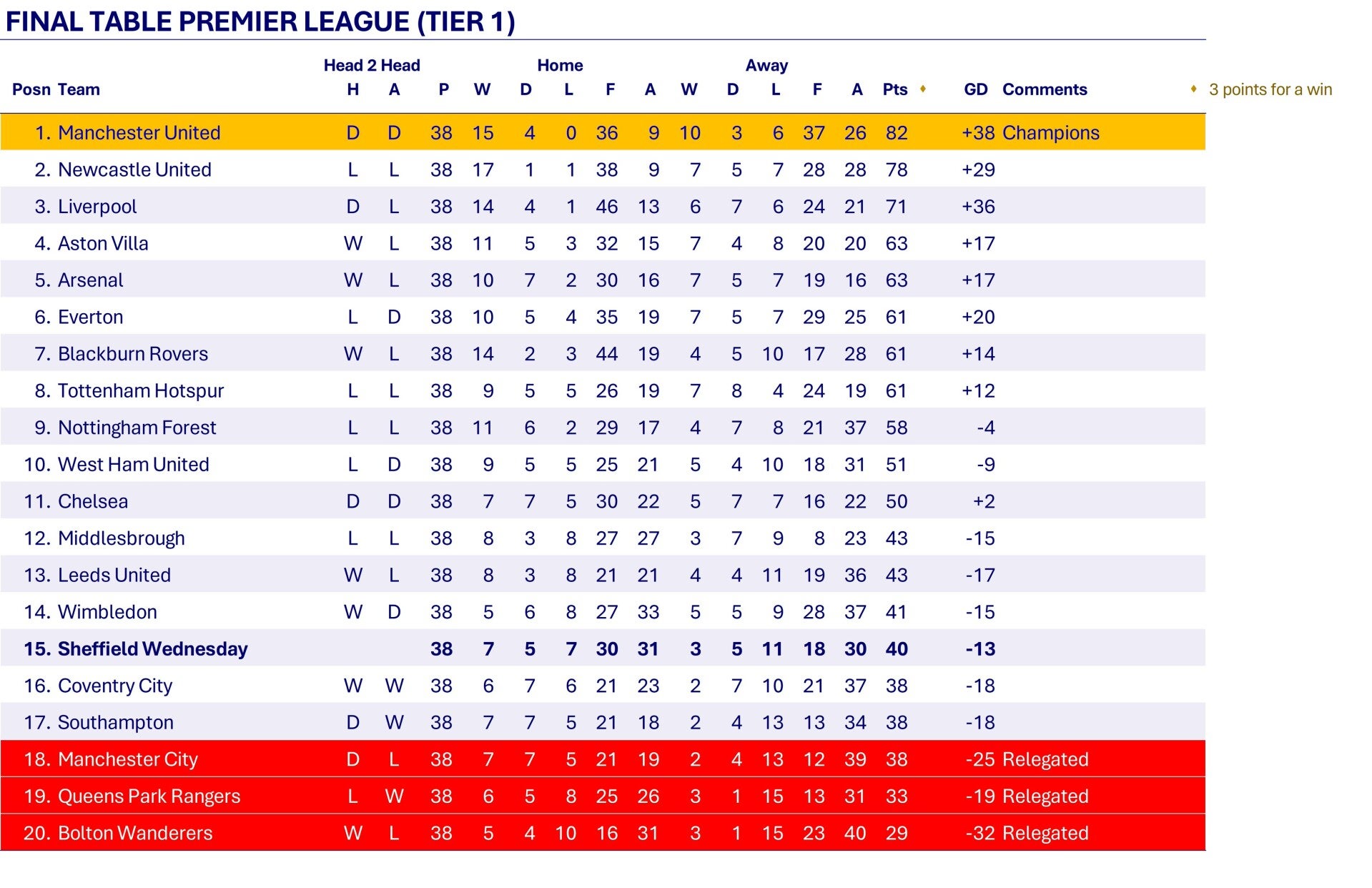 David Pleat's first season as Wednesday manager is a disappointing one. Wednesday are terribly inconsistent and they end the season with just four wins from the last seventeen matches, finishing in 15th place, just two points above the relegation zone.