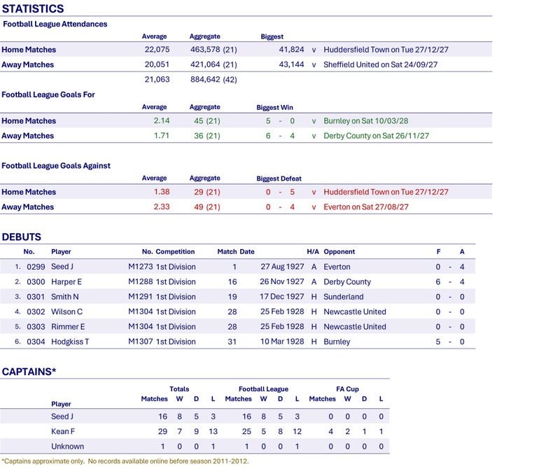 By the 17th March, Wednesday have managed just six wins from thirty-two matches and with ten matches to go are rooted to the bottom of the league, seven points behind the nearest team and looking doomed to relegation. Remarkably they win seven of the remaining matches, drawing the other three and actually finish 14th in the league, although they only have one point more than Tottenham Hotspur, who are relegated alongside Middlesbrough. Wednesday go on to win the Football League Championship in the following two seasons! The catalyst to Wednesday's success is undoubtably the passing of the captaincy from Fred Keen to Jimmy Seed after the 2-0 defeat to Bolton on the 29th February. Seed proves to be an inspirational captain. Ironically he was signed from Tottenham Hotspur, who are relegated as a result of Wednesday's miraculous escape.