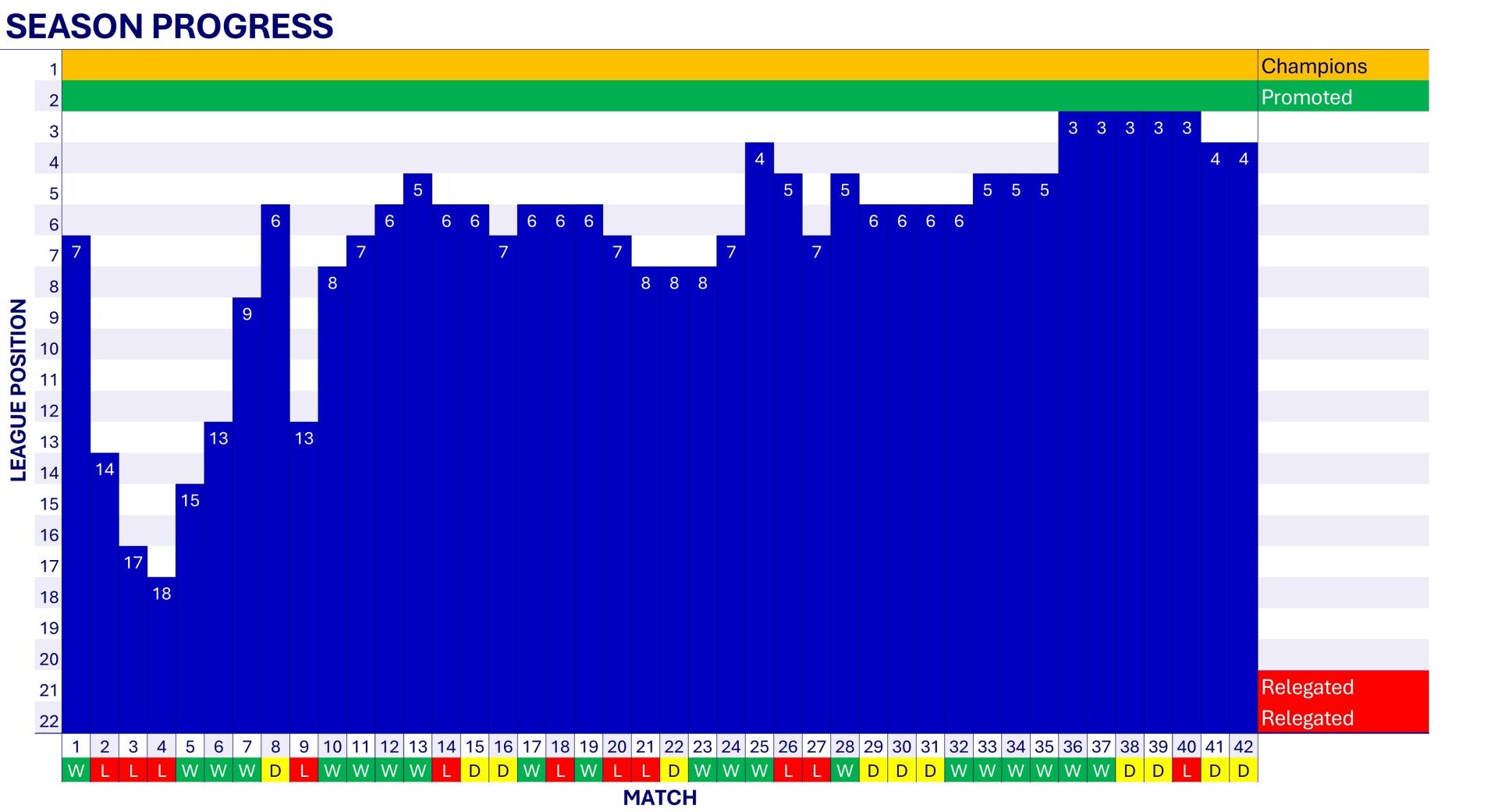 A good start to the season sees Wednesday on the fringes of the promotion race by mid-December, but a great run of just two defeats in eighteen matches sees them climb to 3rd place. Defeat in the vital promotion battle with rivals Newcastle United sees their promotion hopes virtually over with two matches to go, and draws against the Champions Birmingham City and West Bromwich Albion sees them disappointingly pipped to 3rd place by Southampton.