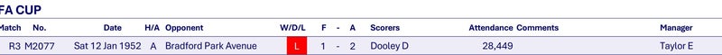 Wednesday lose to 3rd Division Bradford Park Avenue in the FA Cup 3rd round.