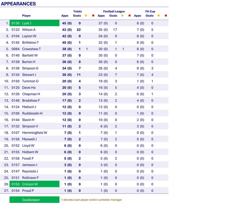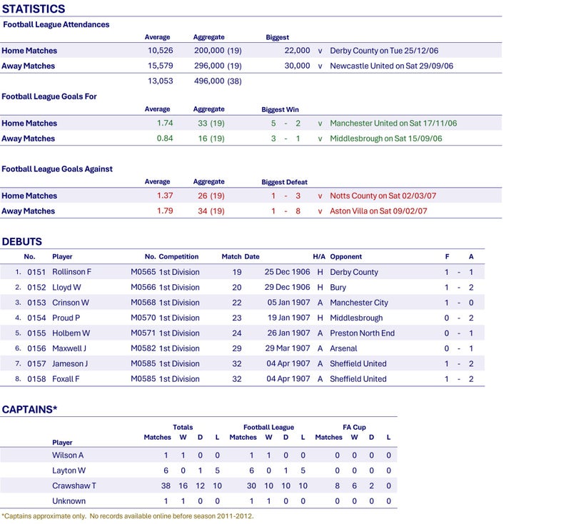 Wednesday have a good start to the season and are in 2nd place by early December. However, they only win three of the remaining twenty-three matches and slip to a disappointing 13th place finish.