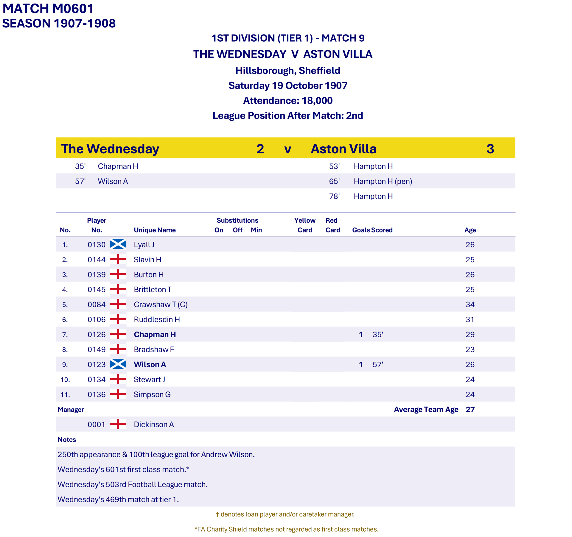 All Wednesday Matches, Players and Managers