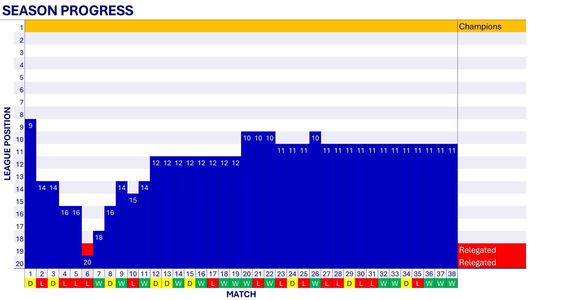 Wednesday get off to a terrible start and are bottom after six matches. Results improve but a very inconsistent season ends in an 11th place finish, a disappointment after finishing in 5th the previous two seasons.