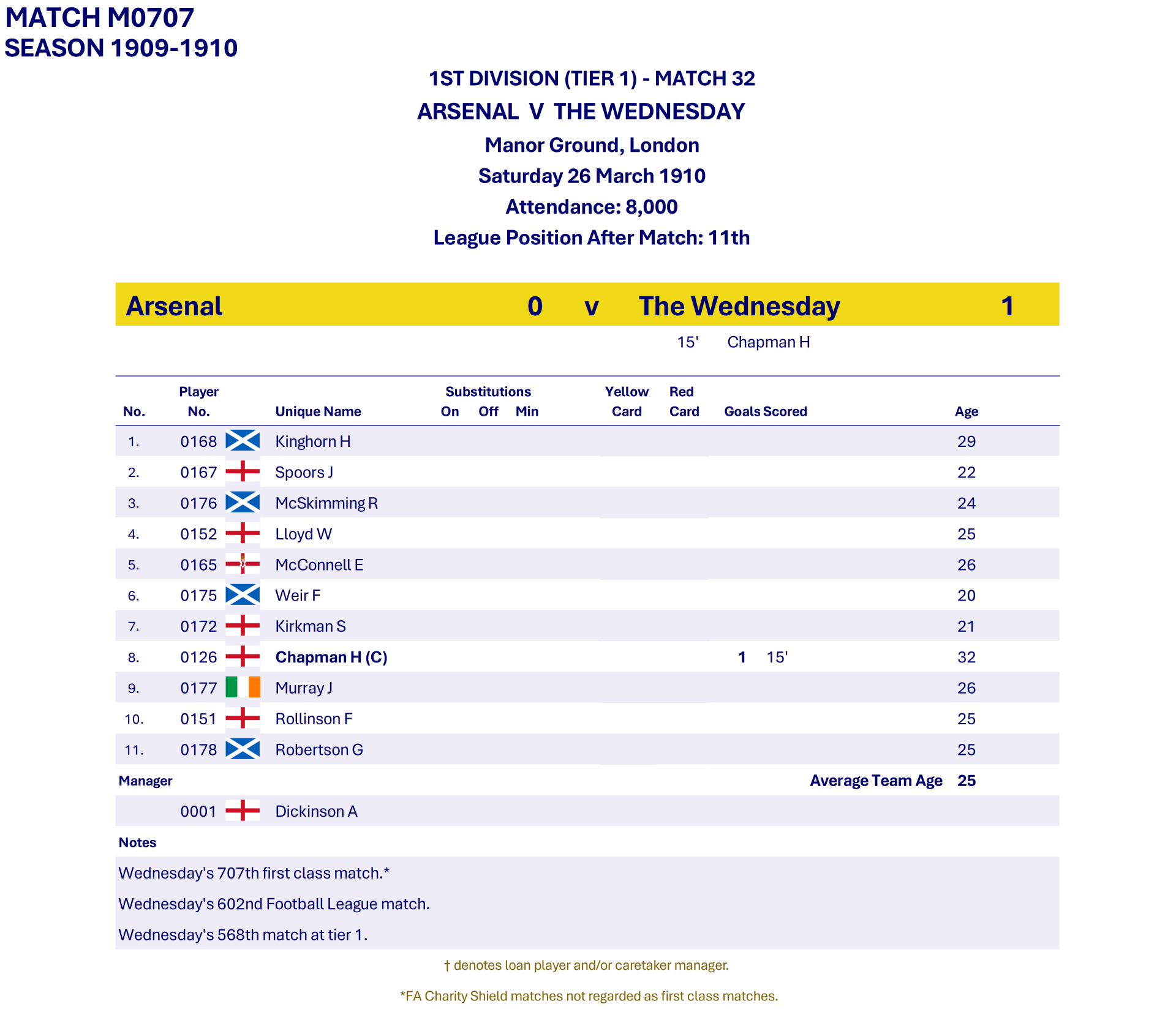All Wednesday Matches, Players and Managers