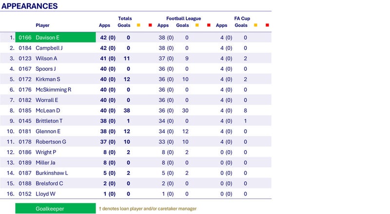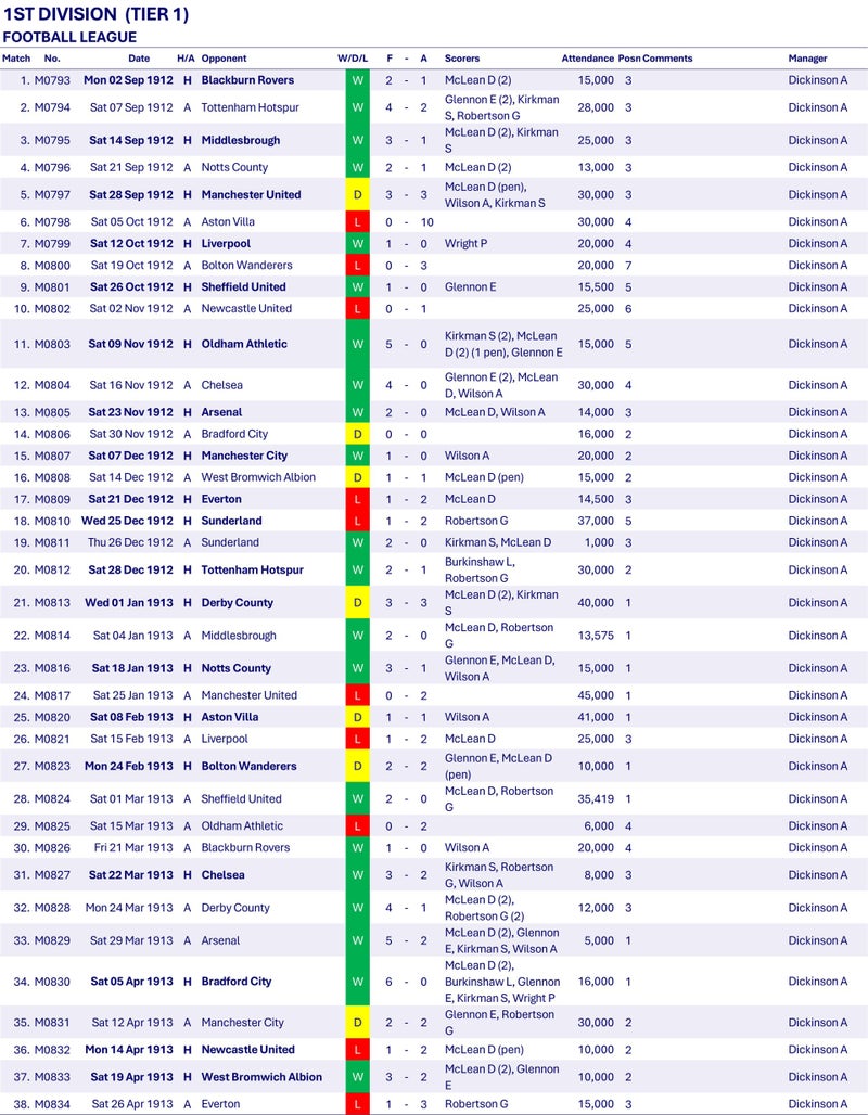 Wednesday have an excellent season and look good for the Championship after thirty-four matches with a terrific run including beating Derby 4-1, Arsenal 5-2 and Bradford City 6-0 in successive matches. Unfortunately one win in the final four matches sees them slip to a 3rd place finish behind Champions Sunderland and runners-up Aston Villa.